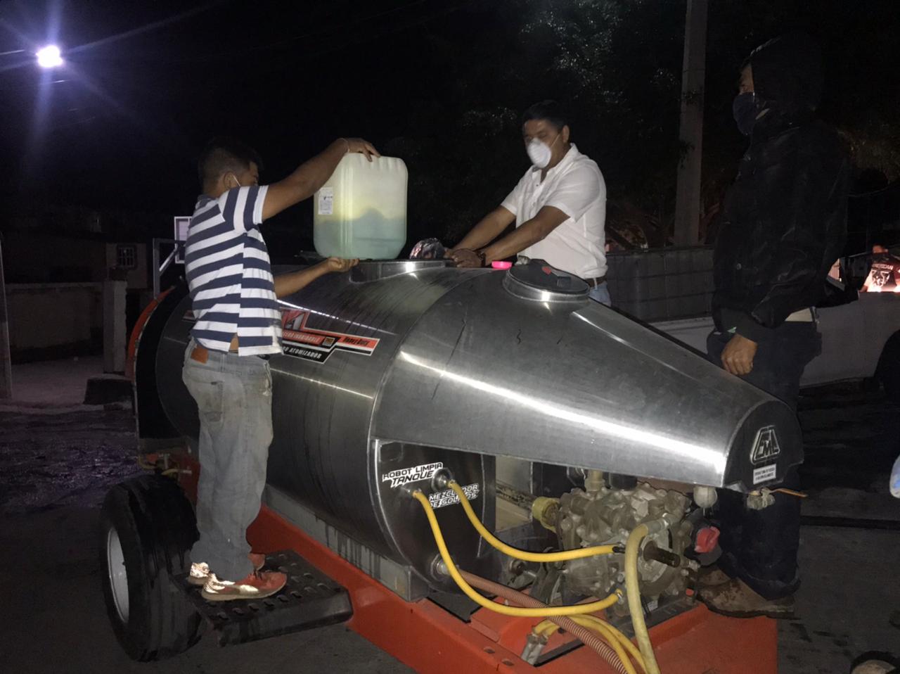 Se aplicó un sanitizante que no es tóxico para las personas, no obstante se les pidió resguardarse en sus hogares para no interrumpir los trabajos, así como el cierre de los comercios a temprana hora.